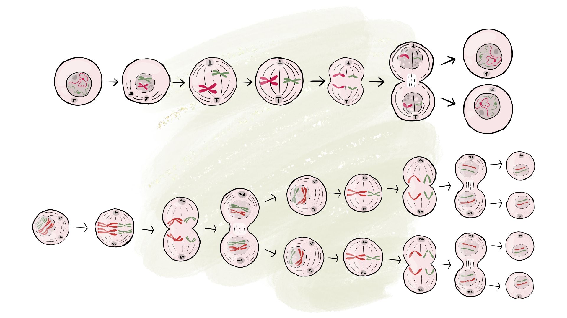 Significado biológico a nivel genético, celular y orgánico de cada una de las divisiones celulares.